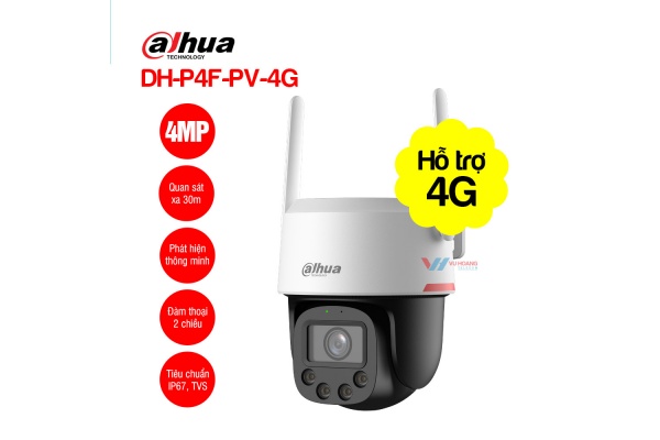 | Tính năng, hỗ trợ | – Phát hiện thông minh: Nhận diện người/ Nhận diện xe – Chuẩn nén: H.265+, H.264+, MJPEG (giảm dung lượng) – Khung hình: tối đa 30fps (mượt mà) – Hỗ trợ phát hiện chuyển động – Hỗ trợ Mic và loa – đàm thoại 2 chiều – Hỗ trợ báo động – Kết nối mạng: Cổng mạng RJ-45 – Hỗ trợ 4G LTE toàn quốc (nhiều băng tần) – Hỗ trợ thẻ nhớ MicroSD lên đến 256GB – Hỗ trợ lưu FTP – Phần mềm quản lý: DSS Pro, đầu ghi NVR 5 Series, ứng dụng DMSS (Android/iOS) – Tiêu chuẩn chống nước – bụi – sét TVS 2000V – bảo vệ điện áp |