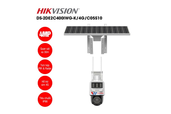 Hikvision DS-2DE2C400IWG-K/4G/C05S10 nổi bật với khả năng hoạt động độc lập nhờ tích hợp pin năng lượng mặt trời và kết nối 4G. Bạn không cần lo lắng về việc đi dây điện hay mạng internet, chỉ cần lắp đặt camera ở vị trí mong muốn và kết nối với sim 4G là có thể sử dụng ngay. Camera có độ phân giải 4MP, cho hình ảnh rõ ràng, chi tiết, cùng với tầm xa hồng ngoại 30m, giúp bạn quan sát tốt trong điều kiện thiếu sáng.
