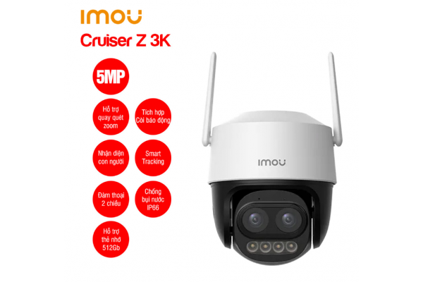 | Hỗ trợ | – Chống ngược sáng HDR – Chế độ ban đêm thông minh với 4 chế độ sáng: Tự động, Full Color, Hồng ngoại và tắt – Cảnh báo chủ động: bật đèn và hú còi (110dB) khi phát hiện có đối tượng xâm nhập, âm thanh tùy chỉnh được. – Tích hợp mic và loa, hỗ trợ đàm thoại 2 chiều to rõ – Hỗ trợ các tính năng thông minh AI (IMOU SENSE): phát hiện con người, phát hiện xe cộ, cho phép tùy chính khu vực báo động – Theo dõi đối tượng Smart Tracking (không zoom theo, chỉ xoay theo) – Hỗ trợ khe cắm thẻ nhớ Micro SD lên đến 512GB – Hỗ trợ chuẩn ONVIF, Cloud, LAN – Kết nối Wi-Fi 6 với 2 ăng-ten giúp bắt sóng tốt hơn. – Chống bụi nước IP66 (ngoài trời) |