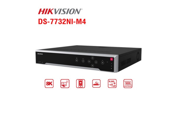 | Tính năng, hỗ trợ | – Băng thông đầu vào tối đa: 320Mbps – Băng thông đầu ra tối đa: 400Mbps – Hỗ trợ 2 cổng HDMI, 2 cổng VGA, Độ phân giải HDMI1 xuất ra tối đa 8K, HDMI2: 4K, VGA1/VGA2: 1920x1080p (Khi cổng HDMI1 có độ phân giải là 8K thì độ phân giải tối đa của cổng HDMI2 là 1920×1080) – Hỗ trợ 1 cổng Audio vào, 1 cổng Audio ra. – Hỗ trợ 2 cổng USB 2.0, 1 cổng USB 3.0. – Hỗ trợ 16 cổng báo động vào và 9 cổng báo động ra. – Hỗ trợ RS-485, RS232 – Hỗ trợ 1 cổng Ctrl 12V (cấp nguồn 12VDC-1A ngõ ra cho các thiết bị báo động mở rông), 1 cổng DC12V (12V-1A) – Hỗ trợ 2 cổng mạng RJ45 10/100/1000Mbps cho phép lựa chọn 2 tính năng : Đa địa chỉ hoặc cổng mạng dự phòng. – Hỗ trợ 4 ổ HDD dung lượng tối đa mỗi ổ 14TB – Hỗ trợ 1 cổng eSATA sử dụng cho ghi hình hoặc xuất dữ liệu. – Hỗ trợ dịch vụ Hik-connect P2P, tên miền Cameraddns miễn phí trọn đời – Hỗ trợ tính năng ANR (Sau khi bị mất kết nối vs camera và được kết nối lại, đầu ghi sẽ lấy lại đoạn dữ liệu khi bị mất kết nối từ thẻ nhớ camera để ghi lên ổ cứng.) |