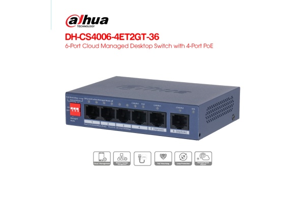 DAHUA DH-CS4006-4ET2GT-36 là switch PoE 6 cổng mạnh mẽ, dễ dùng, hỗ trợ uplink Gigabit và phù hợp cho giám sát, văn phòng, nhà xưởng. Đừng chần chừ! Hãy liên hệ ngay hôm nay để nhận tư vấn và sở hữu sản phẩm với giá ưu đãi nhất. Nâng cấp hệ thống mạng của bạn ngay bây giờ!